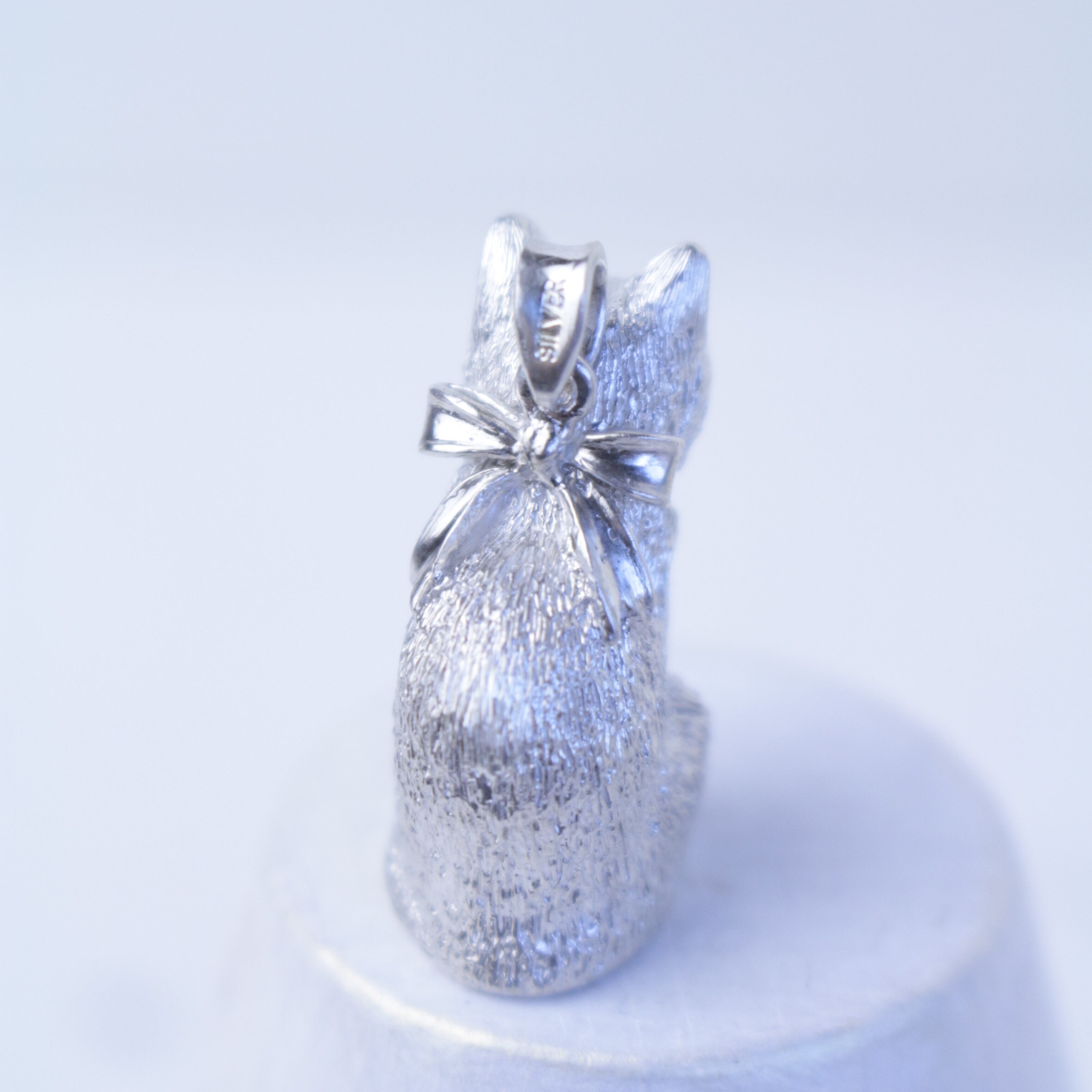 モデルの猫ちゃんがちょこんとお座りをした姿を職人がペンダントトップに仕上げました。